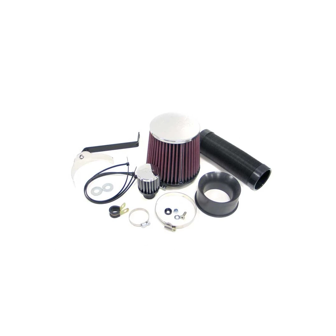 K&N 57i Series induction kits are specifically designed for each different vehicle and will free your car from the size restriction that comes with the factory air box. These economical kits can take a variety of different forms based on vehicle characteristics and available space under the hood. Each kit is designed to provide power throughout the RPM range. The extra surface area of these open-air air filters provides even more airflow at lower restriction than a K&N O/E replacement filter which is limited to the size of the factory air box. The larger air filter also captures and holds more dirt increasing its service life before a cleaning is required (up to 100,000 miles). The filter is either directly attached to the engine carburetor or throttle body or indirectly through a tube assembly running from the filter to the engine. All adapters are made from high quality materials such as steel, aluminum, silicon or reinforced nylon to ensure long life. 57i Series Intakes are not legal for use in California and other US States adopting California emission standards.