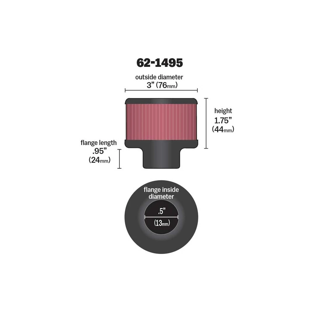 K&N crankcase vent filters are perfect for racing applications, vintage cars or individuals who want to add some aesthetics to their classic carbureted engine. The 62-1495 crankcase vent filter has a K&N embossed chrome top with a rubber base. This filter is designed to screw directly into threaded Ford valve covers. This air filter is constructed with non-woven synthetic filter media so it can be cleaned and reused repeatedly. Note: Legal in California only for racing vehicles which may never be used, registered, or licensed for use upon a highway. See knfilters.com for CARB status on each part for a specific vehicle.
