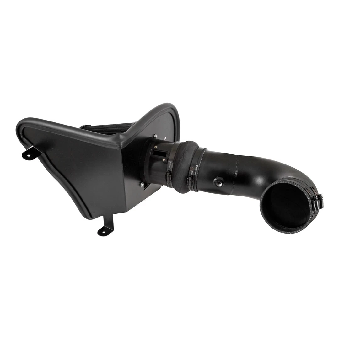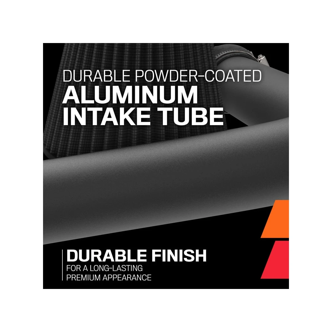 - Powder-coated aluminum intake tube paired with dry synthetic air filter