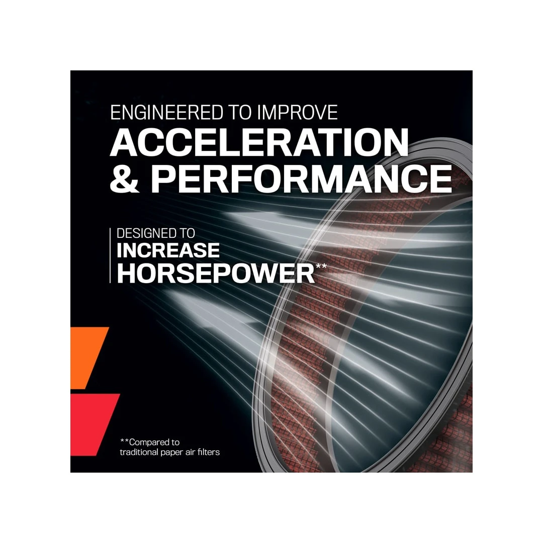 - ENGINEERED POWER: State-of-the-art air filter media is designed to increase horsepower and acceleration as well as improve overall engine performance